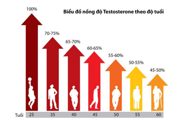 Do các yếu tố thể chất, tâm lý, lối sống và nội tiết thay đổi nên ở mỗi độ tuổi khác nhau nhu cầu tình dục của nam giới cũng có nhiều chuyển biến. Sau tuổi 30, nồng độ testosterone giảm 0,8-1,4% mỗi năm. Theo Hiệp hội Tiết niệu Mỹ , mức testosterone bình thường của một người đàn ông trưởng thành là 300 nanogram/dl. Nếu dưới mức này thì sẽ ảnh hưởng đến nhu cầu tình dục và khả năng tình dục của phái mạnh. Dẫn đến suy giảm sức khỏe tổng thể của nam giới
